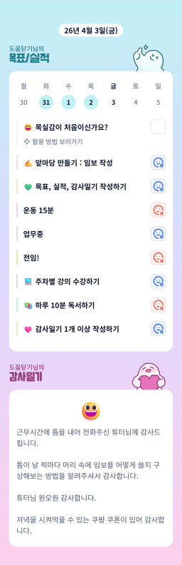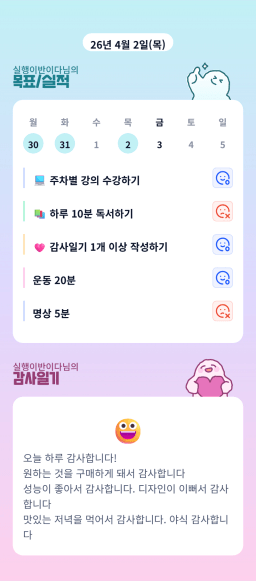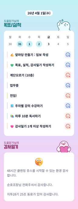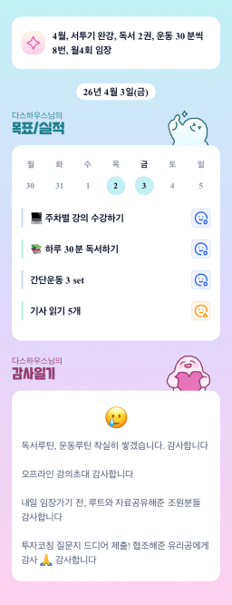 [다나음] 목실감 누적 34일, 연속 34일 진행중