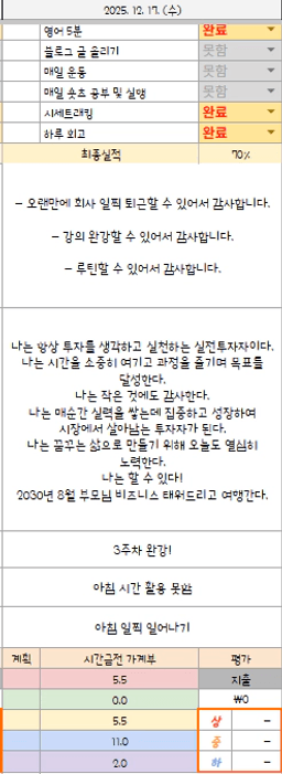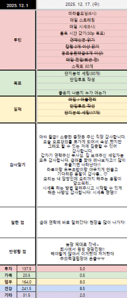 12/17 목표,실적,감사일기,시간가계부 [김실력]