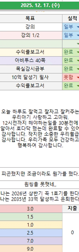[열반스쿨 기초반 89기 1순위 투자원칙 1채씩 쌓아갈조 자유로운 이안] 12/17 목표/실적/감사일기 작성