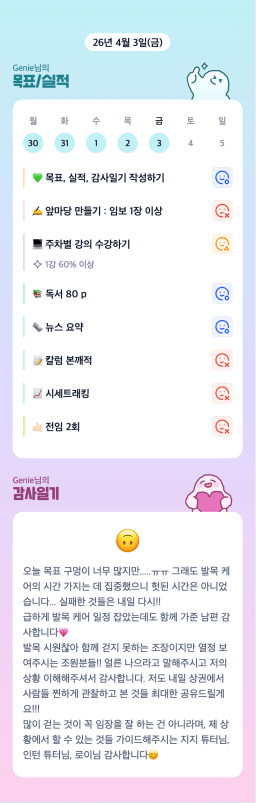 [Genie] 목실감 누적 169일, 연속 125일 진행중, 4/3