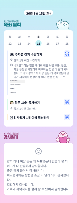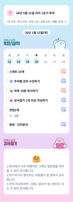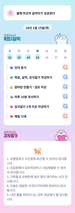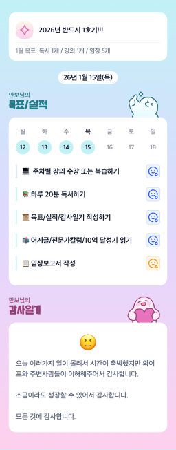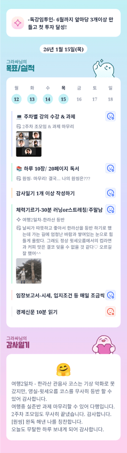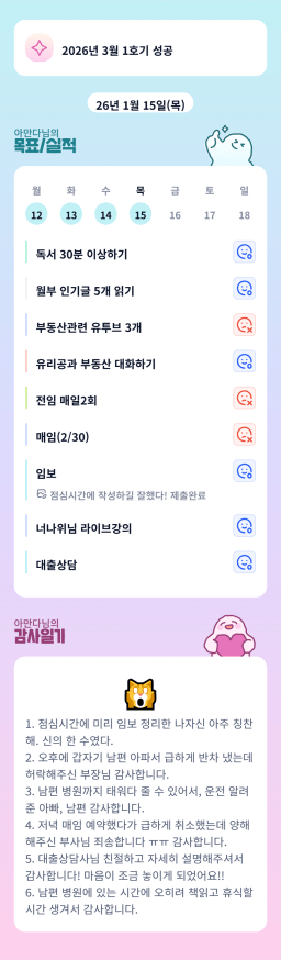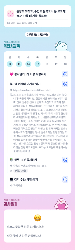 [실준반 72기 72개월 동안 앞마당 5️⃣0️⃣개 가능하조❤️ 꿈찾자] 26. 1. 14 ~ 26. 1. 15 목실감
