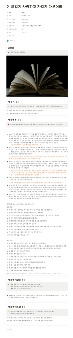 돈버는 독서모임 - 돈, 뜨겁게 사랑하고 차갑게 다루어라 (24.12) 독서후기
