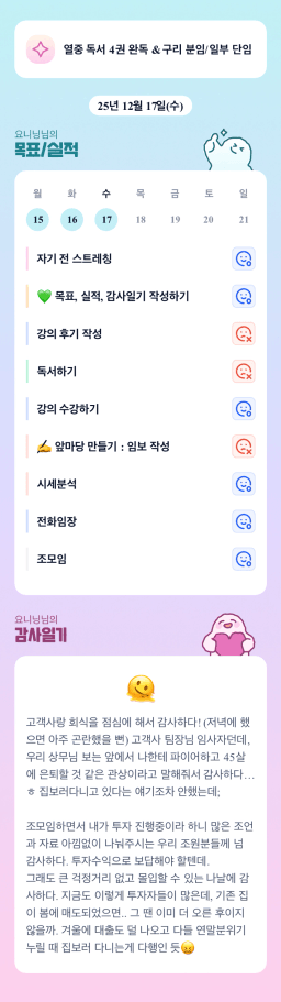 [열기89기 열심히 4고 팔아 6십전에 은퇴하조-12/17(수)]