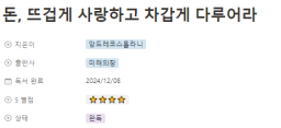돈버는 독서모임 - 돈, 뜨겁게 사랑하고 차갑게 다루어라 (24.12)