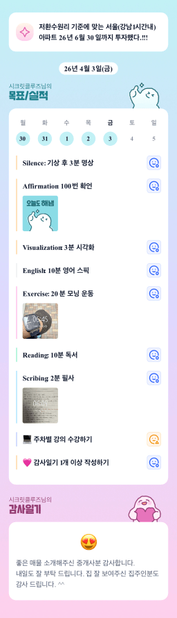 [내마실 프메퍼튜터님과 5래 보유할 6각형 내집마련 조 리얼자슈] 4주차 목실감