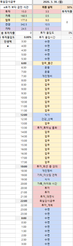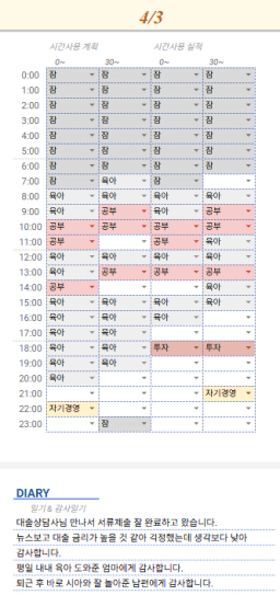 [스테디킴] 4월 3일 목실감, 시간가계부