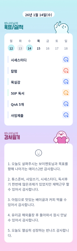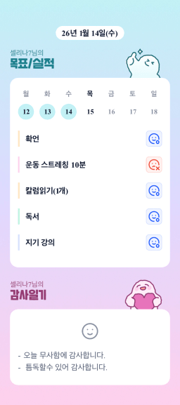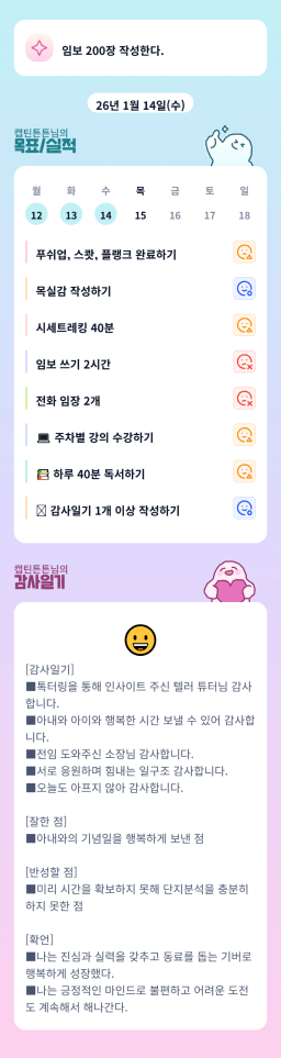 [별찌롱] 1/14 실적, 감사일기, 시간가계부 1/15 목표