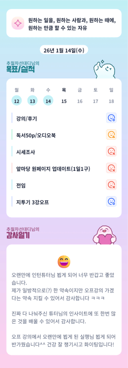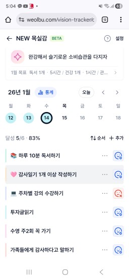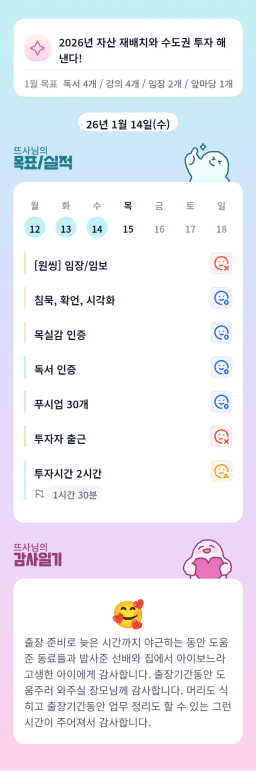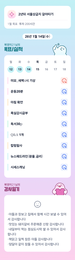 [바리퐈90] 목실감 DAY 395~397(2026/1/12~1/14)