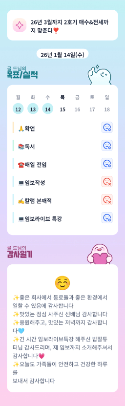 [쏭비맘 목실감 ]26.1.04 ~ 1.14