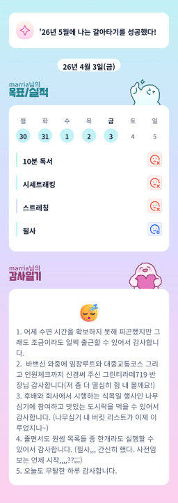 [marria] 목실감 누적 213일, 연속 90일 진행중