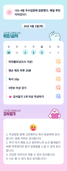 [고민말고행동] 목실감 누적 214일, 연속 4일 진행중