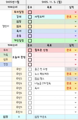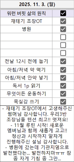 [짱이사랑맘] 11/3 목실감칭반시계부