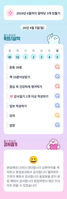 [홈스윗] 목실감 누적 198일, 연속 99일 진행중