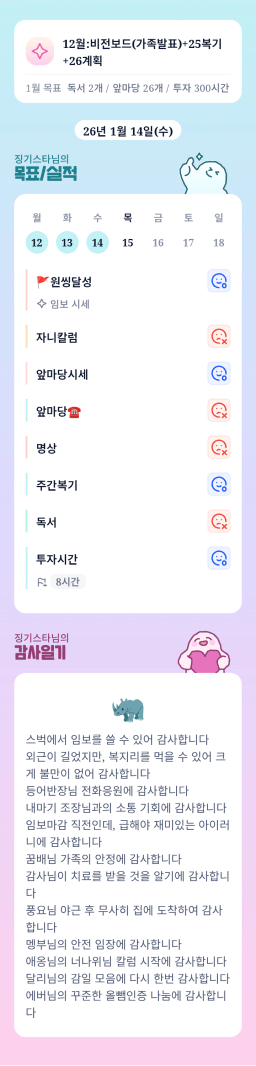 [월부학교 겨울학기 윤이나는 우리 ㅁ12ㅐ 2율] 1/14 고마워율