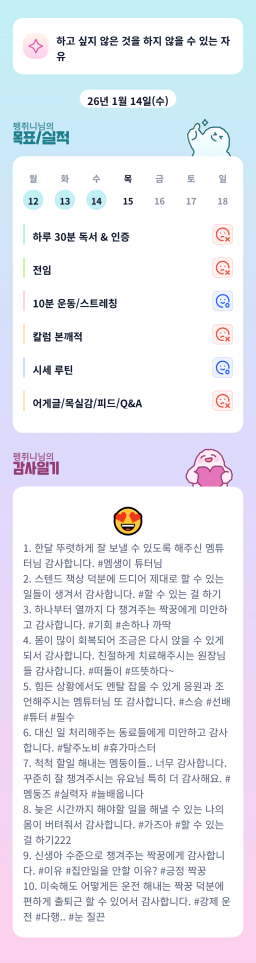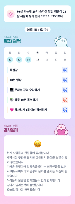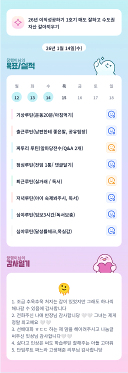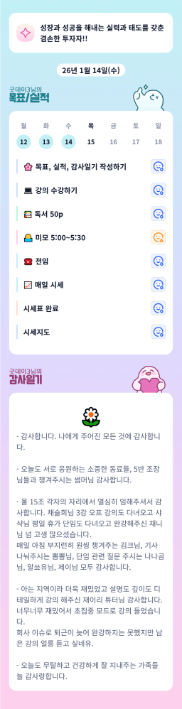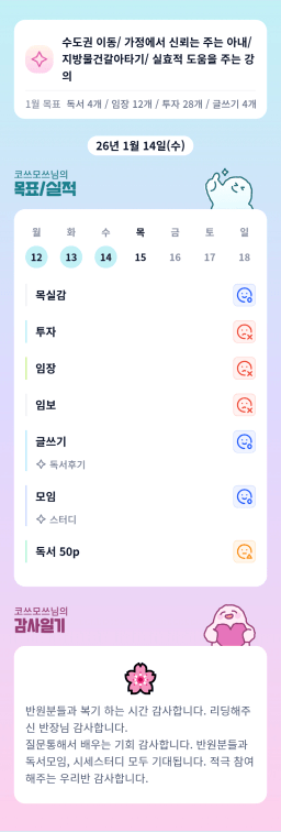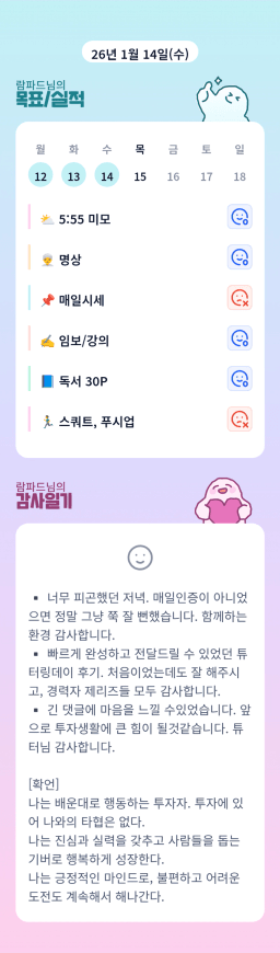 [지투실전 27기 쑤튜님과함께 🌱쑤욱쑤욱 성장하는 2린0ㅣ들 더나은라이프] 1/14 목실감