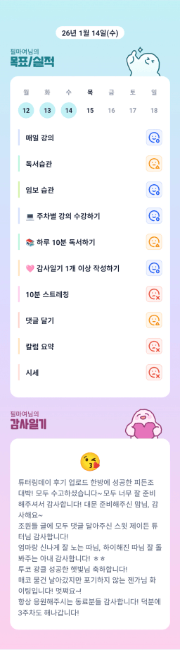 [지투실 27기 밍튜터님ㅇ1ㄹ6 밍밍할틈 어썸 미라클맘]2026.01.14(수) 목실감