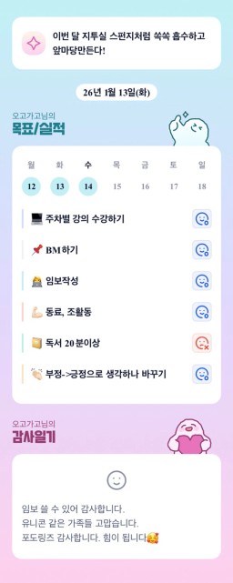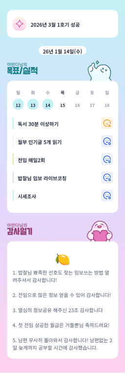 [지투실27기거봐룰루랄라튜터링받고그집4갈잘했지_하나씩]매일목실감26.01.14