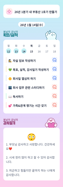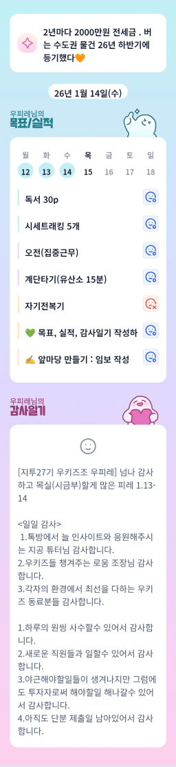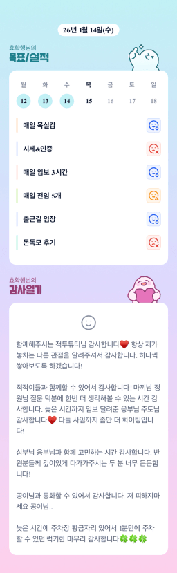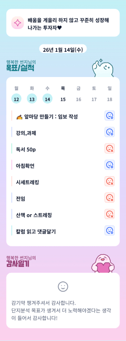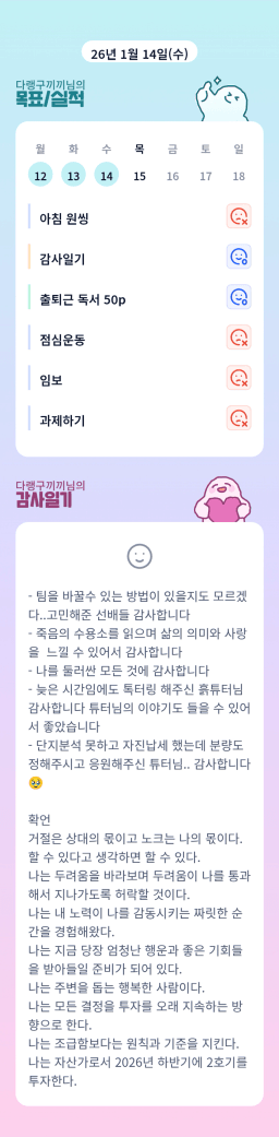 [지투실27기거봐룰루랄라튜터링받고그집4갈잘했지_하나씩]매일목실감26.01.14
