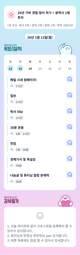 [월부학교 겨울학기 오렌지 하늘아래 6각형 투자자🧡걷는] 목실감(‘26.01.13.화)