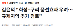 국토부 장관 토허제 규제 추가 지정? 화성 구리 풍선효과 터지나?