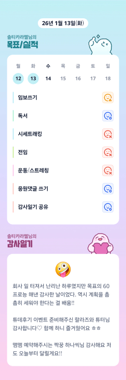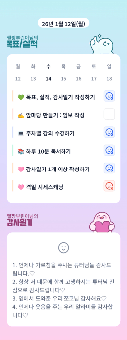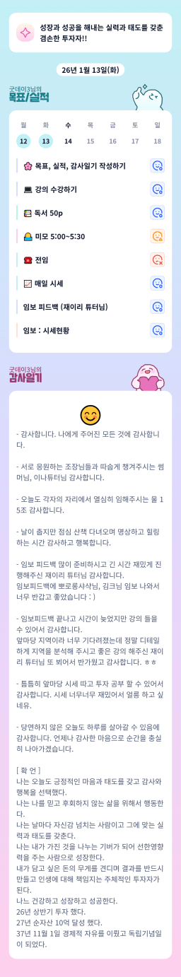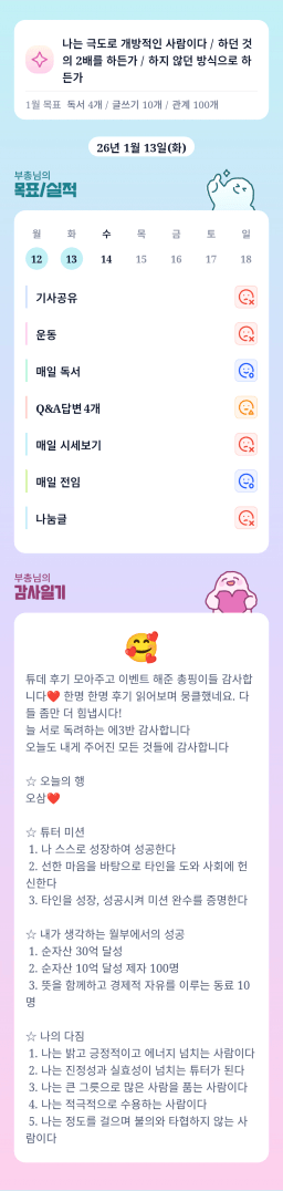 [지투실 27기 밍튜터님ㅇ1ㄹ6 밍밍할틈 어썸 미라클맘2026.01.13(화)목실감]