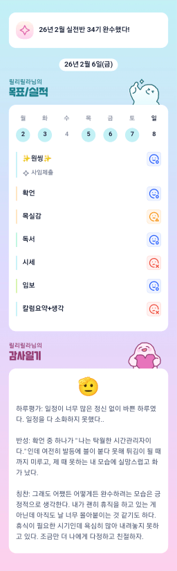 [실전34기 24시간 12개월 꾸준히 나알이 나아가조💙 끼끼] 2월 7일 목실감