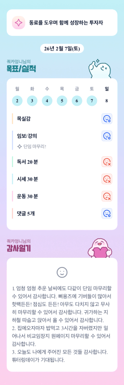 [실전34기🚨삐용삐용 24시간 투자 아라메르 울리조🚨 김다올] 26.2.7.(토) 목실감