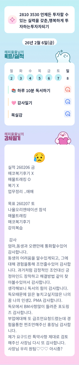[해피율율] 목실감 260206~260207 #가족#독서