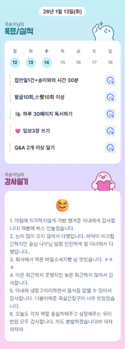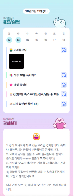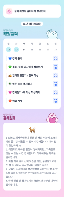 26년 1/14 목표,실적,감사일기,시간가계부[헤라클래스]