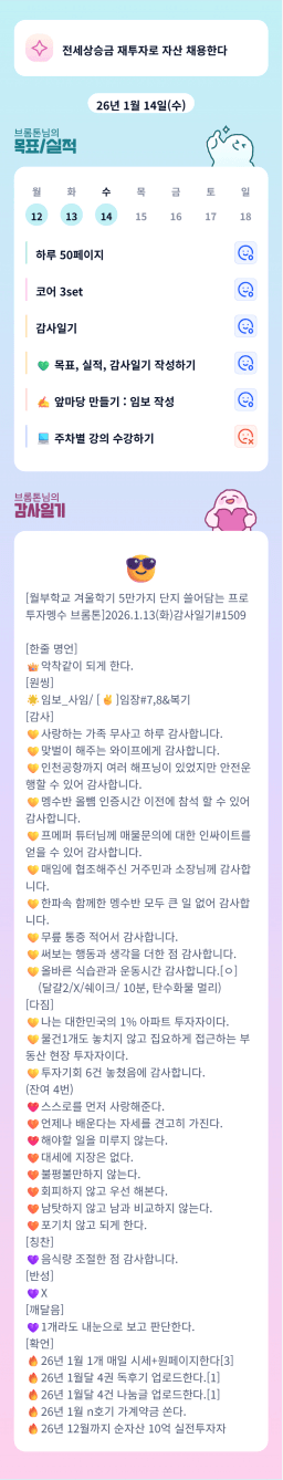 [월부학교 겨울학기 5만가지 단지 쓸어담는 프로투자멩수 브롬톤]2026.1.13(화)감사일기#1509