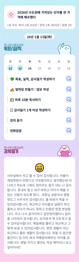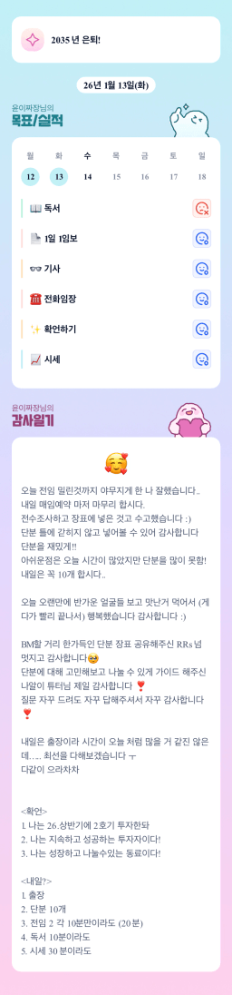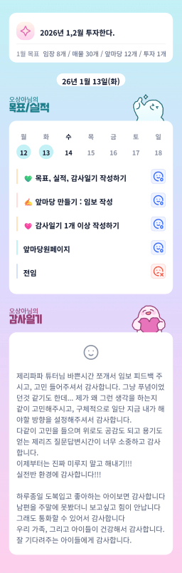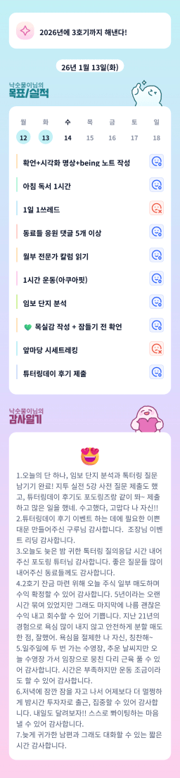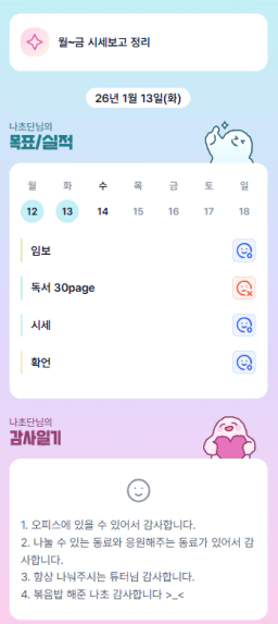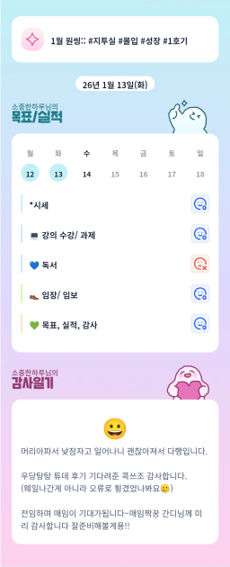 [지투실 27기 미요미우 튜터님과 2심전심 S2 지구별조이] 매일목실감 260111~260113