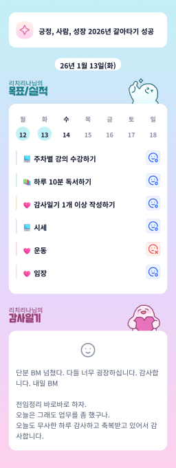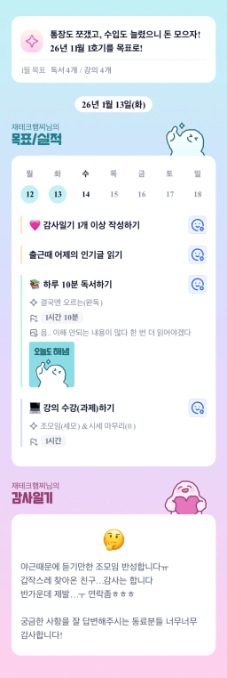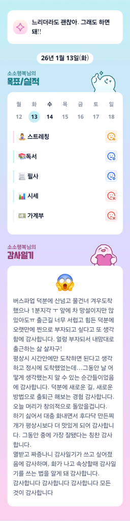 [행복한금붕이] 매일목실감 (202601013) D+263
