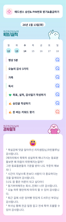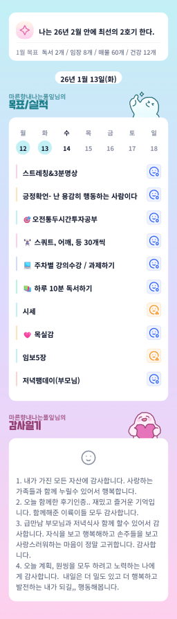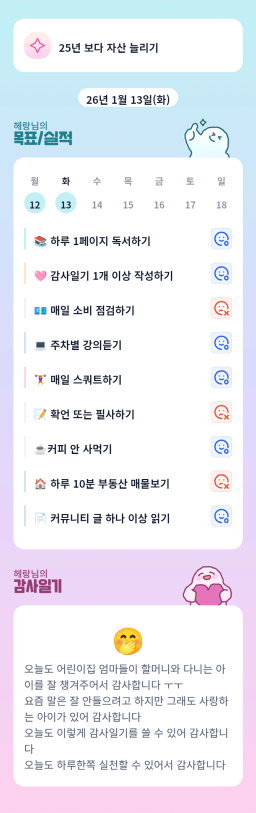 [지투실전 27기 쑤튜터님과함께쑤욱쑤욱성장하는2린0ㅣ들 티끌모아부자] 26.01.13 목실감