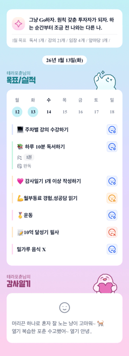 [지투실전 27기 쑤튜터님과함께쑤욱쑤욱성장하는2린0ㅣ들 티끌모아부자] 26.01.13 목실감
