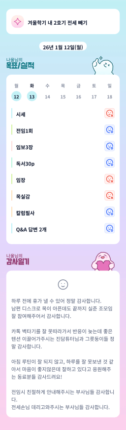 [월부학교 겨울학기 윤이나는 우리 ㅁ12ㅐ 꼬시] 목실감 01.13