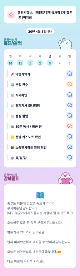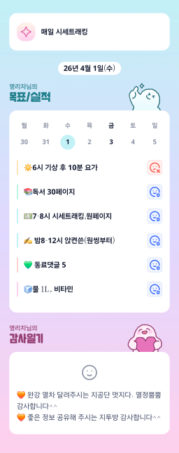 [해길] 26.04.02. 목실감 누적 76일, 연속 5일 진행중