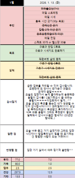 [내마기 61기 5를 곳만 골라 1등으로 잡조 나언이고모] 1주차 목실감 인증