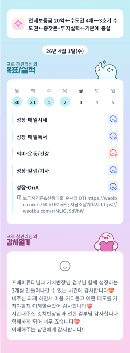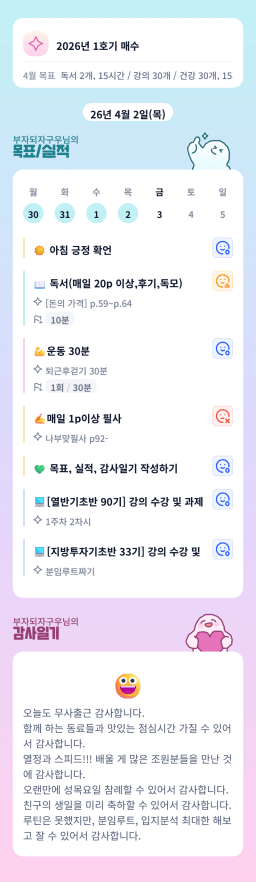 [내마실5기 천사 빈쓰 튜터님과 빡센 3월 보내고 내집마련 완수하조_부자그릇] 4/1(수)~4/2(목) 목실감