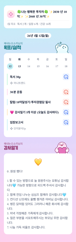[지투27기거봐룰루랄라튜터링받고그집4길잘했지_하나씩]26.01.12매일목실감