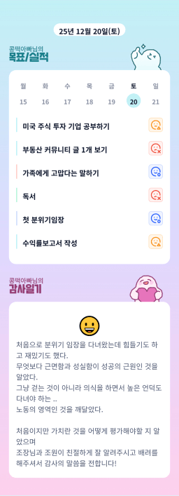 [열기89기 not 조급, but chill(7) 아파트 4모으조 먹부기] 20251220 목실감시금부