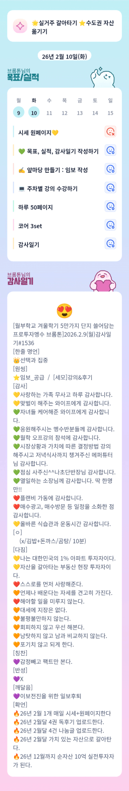 [월부학교 겨울학기 5만가지 단지 쓸어담는 프로투자멩수 브롬톤]2026.2.9(월)감사일기#1536