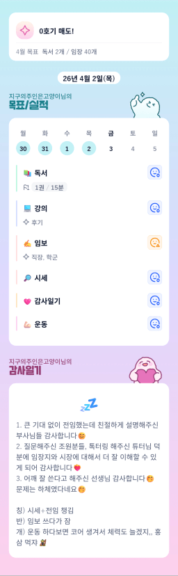 [하루쌓기] 목실감 누적 280일, 연속 280일 진행중