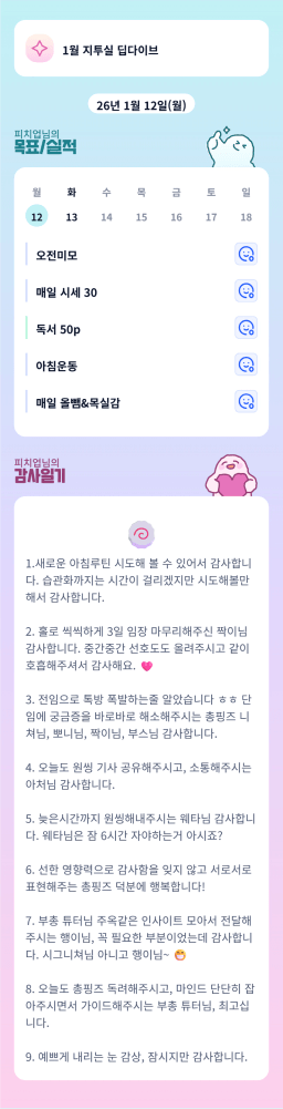 [지투실 27기 총총 뭉쳐서 부 한번 15켜보조 피치업] 매일목실감 1/12