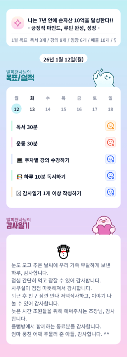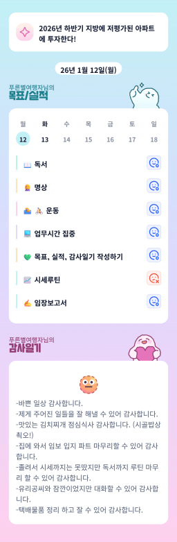 [지투실전 27기 쑤튜님과함께 🌱쑤욱쑤욱 성장하는 2린0ㅣ들/독서TF3조 럭셔리초이] 매일목실감 26.01.12