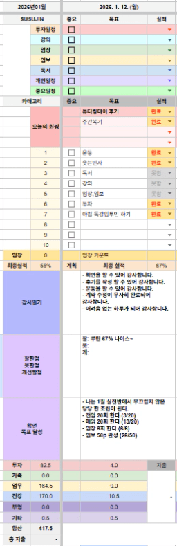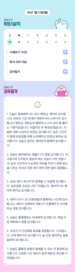 [에이스2반/독서TF 험블] 1월 12일(월) 감사일기
