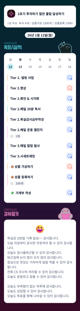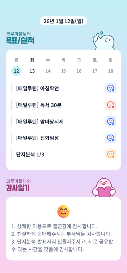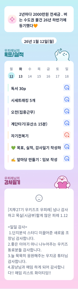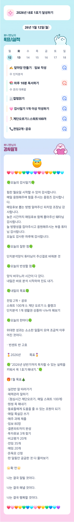 [지투실 27기 밍튜터님ㅇ1ㄹ6 밍밍할틈 어썸 미라클맘]2026.01.12(월) 목실감