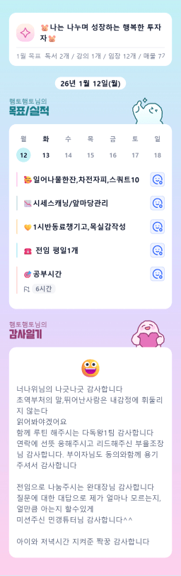 [월부학교 겨울학기 그 겨울, 자향ㅇ1 분다❄️ 여유로운리치] 2025.1.11 ~ 1.12 감사일기