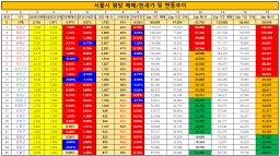[실천하는호랑이] 서울시 6월 매매가/전세가/매전차/전달대비증감율/24평,33평