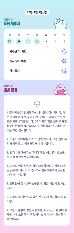[에이스4반/독서TF 험블] 4월 2일(목) 감사일기
