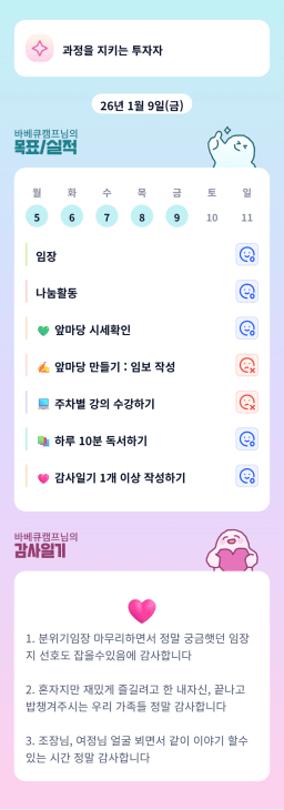 [지투기 32기 2번기회에 잘 8릴 자산 만들조 해태방방] 1주차 목실감 인증